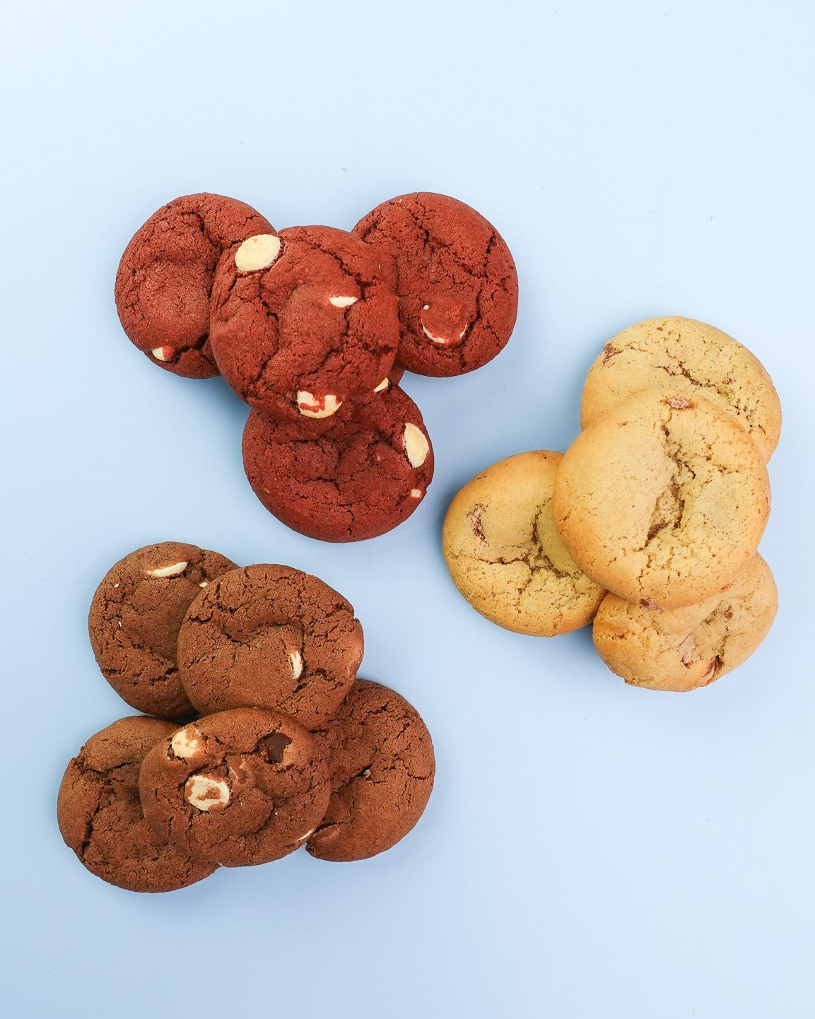 The Scomelette Black Friday Mystery Box contains handmade premium chocolate bars, indulgent cookies, and cookie sandwiches.